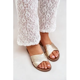 Skórzane Damskie Klapki Lewski Shoes 3682 Złote