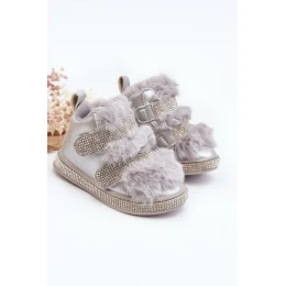 Skórzane Dziecięce Śniegowce Ocieplane Srebrne Leela