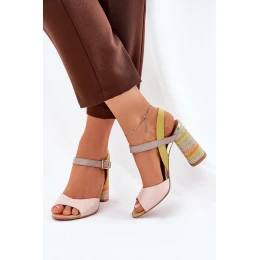 Skórzane Eleganckie Sandały Na Słupku Laura Messi 2136 Multikolor