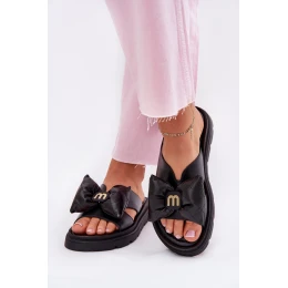 Skórzane Klapki Damskie Na Platformie Z Kokardą CheBello 4647 Czarne