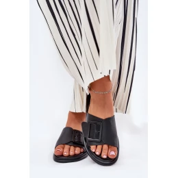 Skórzane Klapki Damskie Z Klamrą D&A SJ2302-01 Czarne