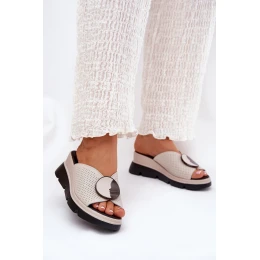 Skórzane Klapki Damskie Z Ozdobą S.Barski LR51-662 Beżowe
