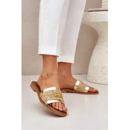 Skórzane Klapki Z Ozdobnym Detalem I Plecionką Zazoo 40426 Złote