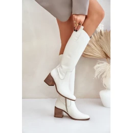 Skórzane Kozaki Przed Kolano Na Słupku Zazoo 3675 Białe