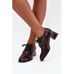 Skórzane Lakierowane Półbuty Damskie Na Obcasie Z Kryształkami Artiker 57C0073 Bordowe