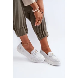 Skórzane Mokasyny Damskie Na Platformie Białe S.Barski LR720
