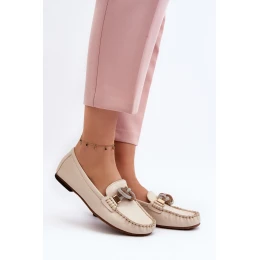 Skórzane Mokasyny Damskie Z Ozdobą Laura Messi 2761 Jasnobeżowe