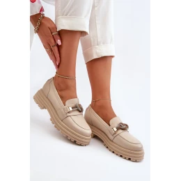 Skórzane Mokasyny Damskie Z Ozdobą Laura Messi 2780 Beżowe