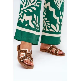 Skórzane Płaskie Klapki W Panterkę Zazoo 40383 Brązowe
