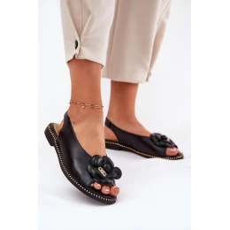 Skórzane Płaskie Sandały Z Ozdobą CheBello 4642 Czarne