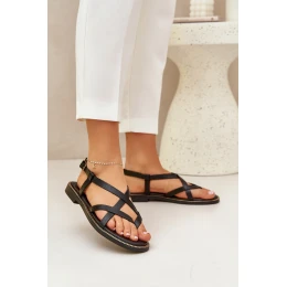 Skórzane Płaskie Sandały Z Przeplatającymi Się Paseczkami Zazoo 40429 Czarne