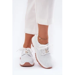 Skórzane Półbuty Damskie Z Przypinką Artiker 54C1810 Białe