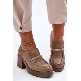 Skórzane Półbuty Na Słupku Z Ozdobą Ciemnobeżowe Lemar Gelanor