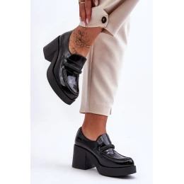 Damskie półbuty na obcasie z cholewką wykonaną ze skóry naturalnej. Wnętrze zostało pokryte również skórą naturalną dzięki temu są bardzo komfortowe w użytkowaniu. Z przodu znajduje się błyszcząca ozdoba. Stylowy obcas w postaci szerokiego słupka zapewni stabilizację na każdym kroku. Zapiętek jest usztywniany. Dodatkowo pod językiem znajduje się gumka ściągająca, która sprawi, że but będzie idealnie dopasowany do stopy. Przy wyborze rozmiaru prosimy sugerować się tabelą rozmiarów.