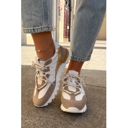 Skórzane Półbuty Sneakersy Damskie Artiker 56C1738 Beżowo-Złote