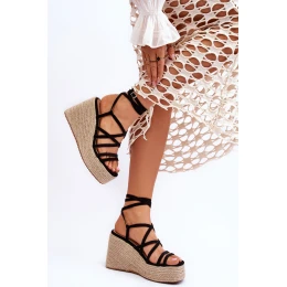 Skórzane Sandałki Na Koturnie Czarne Margaritt