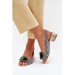 Skórzane Sandały Damskie Na Klocku Z Ozdobnym Kwiatem Laura Messi 2973 Biało-Czarne