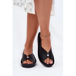 Skórzane Sandały Damskie Na Koturnie I Platformie S.Barski KV51-020 Czarne