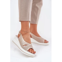 Skórzane Sandały Damskie Na Koturnie S.Barski LR51-660 Złote