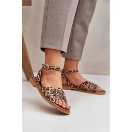 Skórzane Sandały Damskie Na Płaskim Obcasie Panterka Zazoo 3688 Brązowe