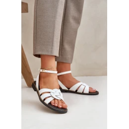 Skórzane Sandały Damskie Na Płaskim Obcasie Zazoo 3688 Białe