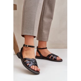 Skórzane Sandały Damskie Na Płaskim Obcasie Zazoo 3688 Czarne