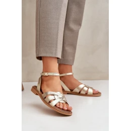 Skórzane Sandały Damskie Na Płaskim Obcasie Zazoo 3688 Złote