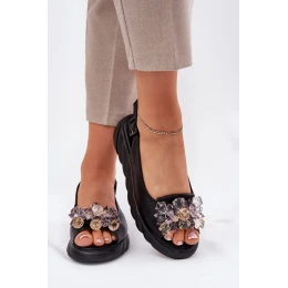 Skórzane Sandały Damskie Z Kryształkami Artiker 54C1628 Czarne