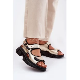 Skórzane Sandały Damskie Z Rzepami Artiker 56C0469 Złote