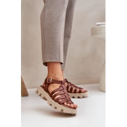 Skórzane Sandały Damskie Zazoo 3695 Brązowe