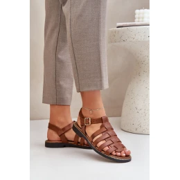 Skórzane Sandały Na Płaskim Obcasie Zazoo 3686 Camel
