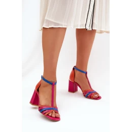Skórzane Sandały Na Słupku Laura Messi 2879 Multikolor