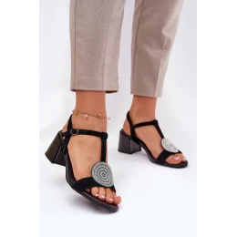 Skórzane Sandały Na Słupku Z Ozdobą D&A JC51-842 Czarne