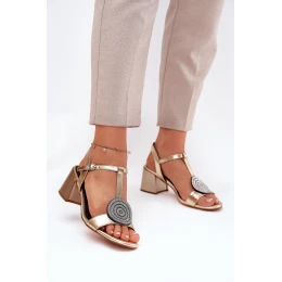 Skórzane Sandały Na Słupku Z Ozdobą D&A JC51-842 Złote