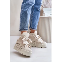 Skórzane Sneakersy Damskie Na Masywnej Platformie CheBello 4561 Beżowe