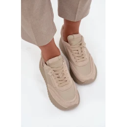 Skórzane Sneakersy Damskie Na Platformie Artiker 55C0021 Beżowe