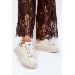 Skórzane Sneakersy Damskie Na Platformie GOE RR2N4004 Beżowe