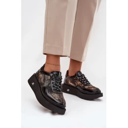Skórzane Sznurowane Półbuty Damskie Na Platformie Artiker 57C2042 Czarno-Złote