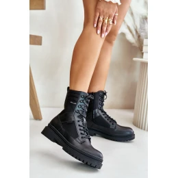 Skórzane Trapery Botki Męskie Ocieplane Big Star OO174164 Czarne