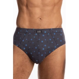 Klasické pánske slipy, zosilnené boky, pohodlný elastický pás podšitý bavlnou, balené v škatuľke po troch kusoch vo vyobrazených farbách s jemnou potlačou.