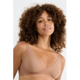 Táto bezšvová podprsenka v nude farbe je kombináciou moderného dizajnu a maximálneho pohodlia. Mäkká, elastická tkanina sa jemne prispôsobí telu a poskytuje prirodzenú oporu bez kostice alebo pevných výstuží. Vďaka hladkej konštrukcii zostáva podprsenka neviditeľná pod oblečením, dokonca aj pod priliehavými štýlmi.