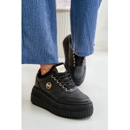 Sneakersy Buty Sportowe Damskie Ocieplane Na Masywnej Podeszwie Czarne Ardiela