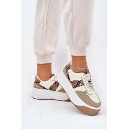 Sneakersy Damskie Na Masywnej Platformie Zwierzęcy Wzór Beżowe Telanila