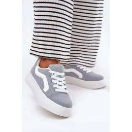 Damskie sneakersy z eko zamszu to doskonały wybór na co dzień, łączący styl i komfort. Osadzone na platformie, zapewniają wygodę oraz dodatkową stabilność. Zaokrąglone noski gwarantują swobodę ruchu, a miękka wkładka pokryta materiałem dba o komfort przez cały dzień. Klasyczny fason tych sneakersów sprawia, że doskonale komponują się z codziennymi stylizacjami, oferując zarówno funkcjonalność, jak i modny wygląd. Przy wyborze rozmiaru prosimy kierować się tabelą rozmiarów.