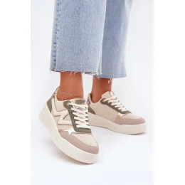 Sneakersy Damskie Na Platformie Panterka Beżowe Kelsia
