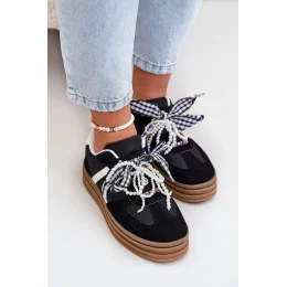 Sneakersy Damskie Na Platformie Z Ozdobami Czarne Vinness