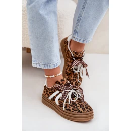 Sneakersy Damskie W Panterkę Na Platformie Z Ozdobami Brązowe Vinness