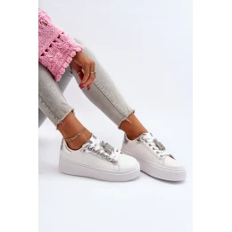 Sneakersy Damskie Z Ozdobą Białe Celedria
