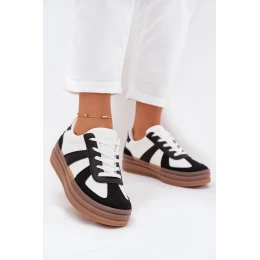 Sneakesy Damskie Na Platformie Biało-Czarne Sivirae