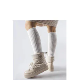 Béžové zateplené snehule s gumovou páskou Oslavia sú ideálna obuv pre mladých ľudí, ktorí si cenia módny vzhľad a pohodlie. Ich okrúhly špicatý tvar poskytuje voľnosť pohybu a zároveň chráni nohy pred chladom a vlhkosťou. Topánky majú inovatívny systém na platforme, ktorý zvyšuje pohodlie pri nosení. Vyšší model nad členkom zaručuje ochranu pred zimnými podmienkami, ideálny pre tých, ktorí preferujú športový štýl. Teplé vnútorné prostredie so špeciálnou vložkou udržuje nohy teplé aj v najchladnejšie dni. Vyrobené z gumy sú odolné proti vlhkosti a trvanlivé. Béžové zateplené snehule s gumovou páskou Oslavia sú kombináciou pohodlia, štýlu a funkčnosti, ideálne na nosenie každý deň v ťažkých zimných podmienkach. Zateplené s klinovým zipsom majú béžovú podrážku a sú skvelou voľbou na nadchádzajúcu jeseň/zimu.